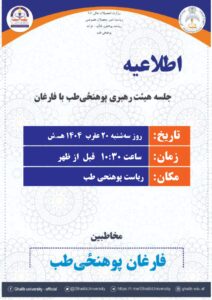 به تاریخ دو شنبه 26 عقرب 1404 مشاوریت عمومی پوهنتون غالب جناب پوهاند نجیب الله فریور با اساتید دایمی پوهنحی طب معالجوی نشست را پیرامون موضوعات مهم در این پوهنحی داشت، که در این نشست پیرامون نصاب پوهنحی طب، بررسی Read more