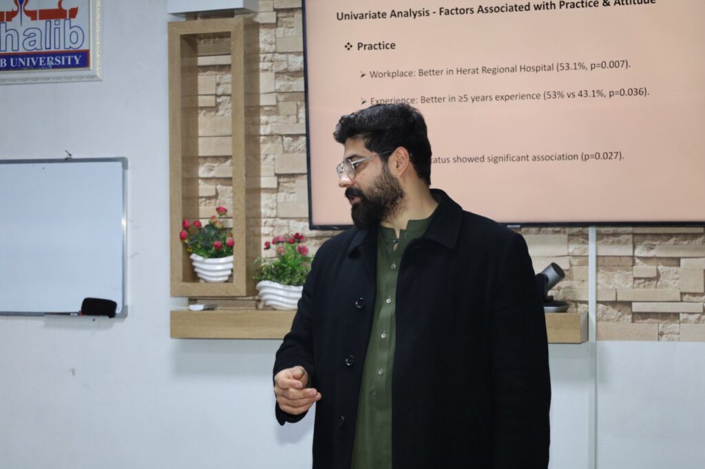 کمیته تحقیقات علمی پوهنځی طب پوهنتون غالب هرات به تاریخ 15 قوس 1404 کنفرانس علمی را تحت عنوان یافته های پژوهشی مرتبط با آگاهی، نگرش و طرز عمل کارکنان صحی در قبال هیپاتیت B در مراکز صحی هرات برگزارنمود که ارائه این کنفرانس توسط دو تن ازاساتید این پوهنحی دوکتور عنایت الله اعجازو دوکتور محمد فیصل وردک صورت گرفت .